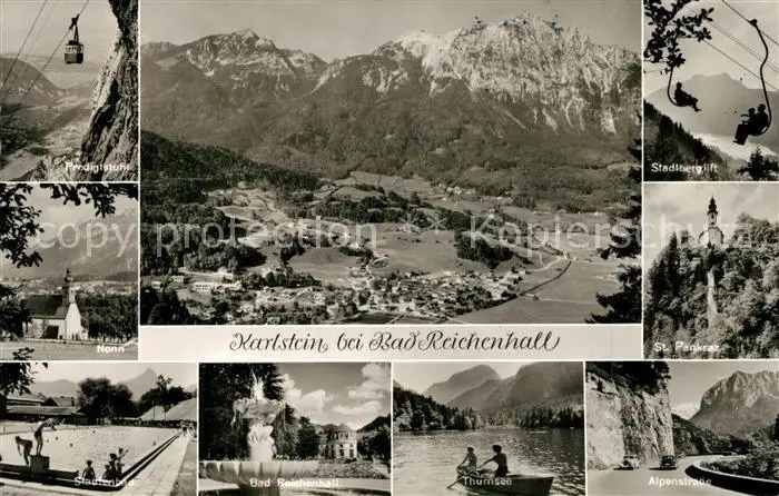 AK / Ansichtskarte Bad_Reichenhall Predigtstuhl Bergbahn Sessellift Alpenstrasse St. Pankraz Kapelle Nonn Freibad Thumsee Gesamtansicht mit Alpenpanorama Bad_Reichenhall