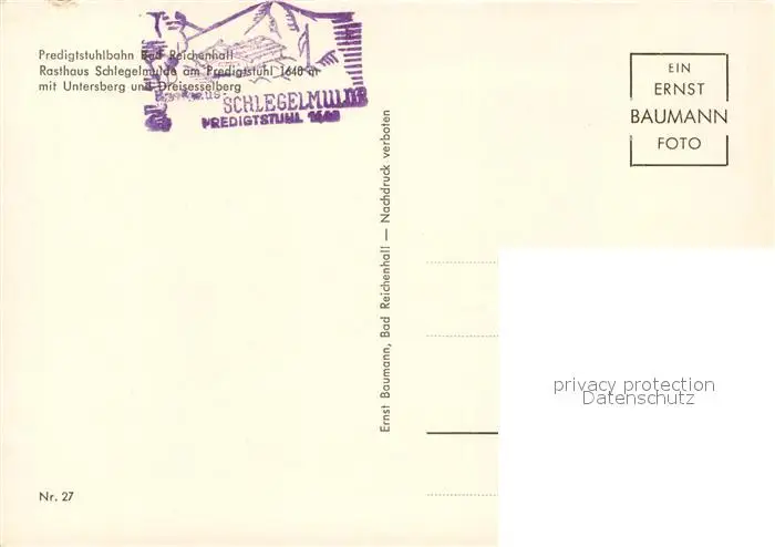 Bad_Reichenhall Predigtstuhlbahn Rasthaus Schlegelmulde Untersberg Dreisesselberg Bad_Reichenhall postalisch nicht gelaufen nach 1965 Erhaltung siehe scans [KathaD81] Kathoren