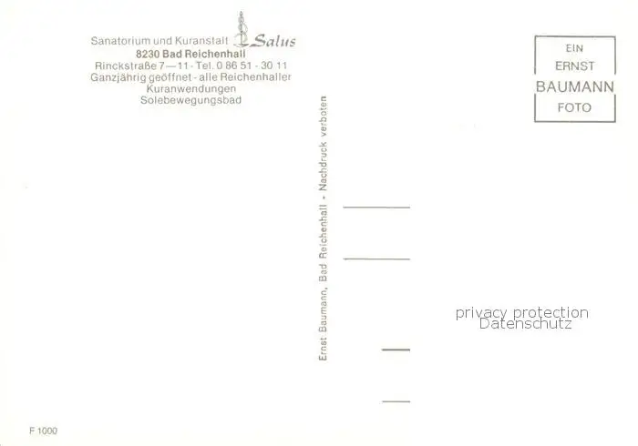 Bad_Reichenhall Sanatorium und Kuranstalt Salus Bad_Reichenhall postalisch nicht gelaufen nach 1965 Erhaltung siehe scans [FriedD77] Frierer