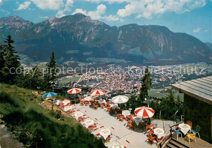 AK / Ansichtskarte Bad_Reichenhall Stadtberglift Terrasse Gaststaette Blick zu Hochstaufen Chiemgauer Alpen Bad_Reichenhall