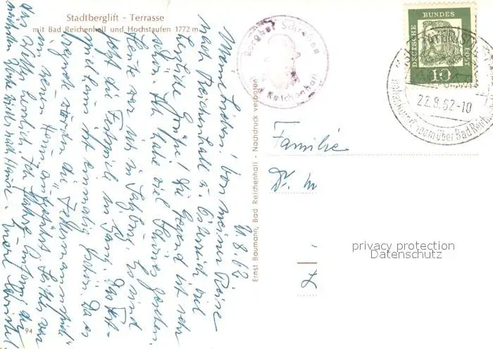 Bad_Reichenhall Stadtberglift Terrasse Gaststaette Blick zu Hochstaufen Chiemgauer Alpen Bad_Reichenhall postalisch gelaufen 1962 Erhaltung siehe scans [FriedD77] Frierer