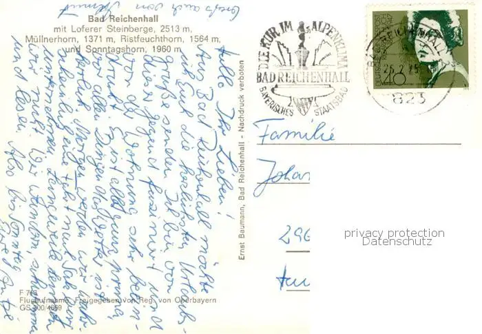 Bad_Reichenhall mit Loferer Steinberge Bad_Reichenhall postalisch gelaufen 1975 Fliegeraufnahme Erhaltung siehe scans [FriedD77] Fliegeraufnahme Frierer
