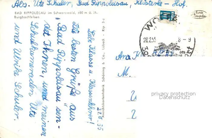 Bad_Rippoldsau_Schwarzwald Burgbachfelsen Bad_Rippoldsau postalisch gelaufen 1955 Erhaltung siehe scans [WerneD78] WernPID7