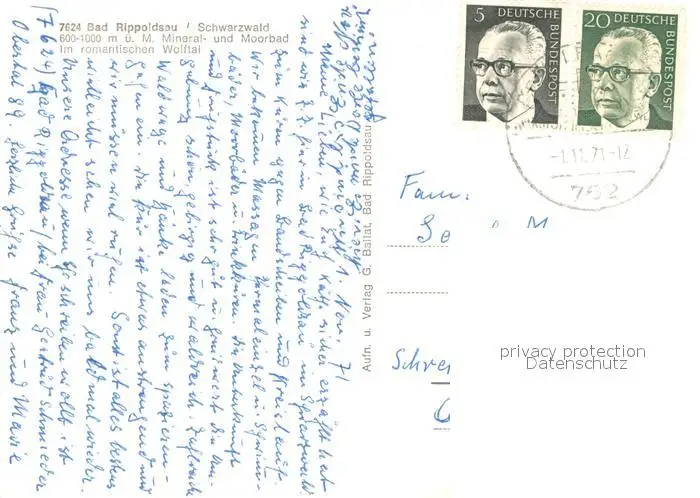 Bad_Rippoldsau_Schwarzwald Fliegeraufnahme Bad_Rippoldsau postalisch gelaufen 1971 Erhaltung siehe scans [WerneD78] WernPID7