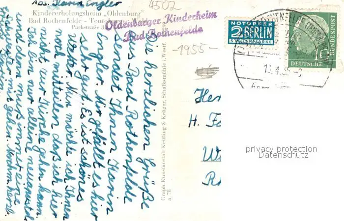 Bad_Rothenfelde Kindererholungsheim Oldenburg Haupteingang Bad_Rothenfelde postalisch gelaufen 1955 Erhaltung siehe scans [LiesaD40] LiesID40