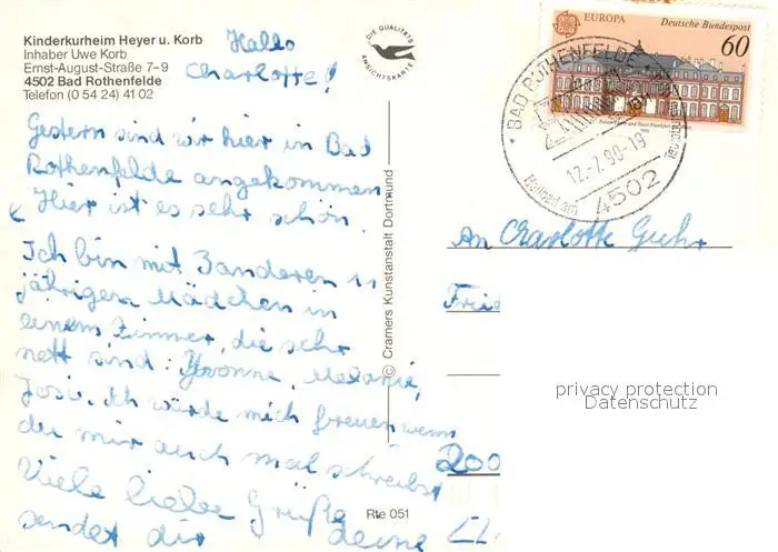 Bad_Rothenfelde Kinderkurheim Heyer und Korb Tischtennis Schwimmbad Bad_Rothenfelde postalisch gelaufen 1990 Erhaltung siehe scans [LiesaD40] LiesID40