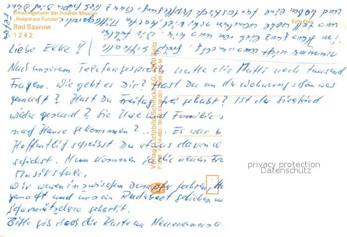 Bad_Saarow Erholungsheim der Inneren Medizin Hospiz zur Furche Bad_Saarow postalisch nicht gelaufen 1986 Erhaltung siehe scans [FriedD77] Frierer