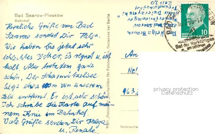 Bad_Saarow-Pieskow Bahnhof Bad_Saarow-Pieskow postalisch gelaufen 1965 Erhaltung siehe scans [WerneD78] WernPID7