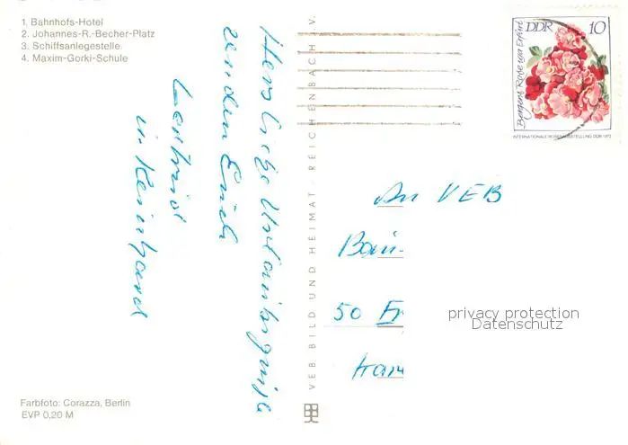 Bad_Saarow-Pieskow Bahnhofshotel Johannes R Becher Platz Schiffsanlegestelle Maxim Gorki Schule Bad_Saarow-Pieskow postalisch gelaufen 1973 Erhaltung siehe scans [FriedD77] Frierer