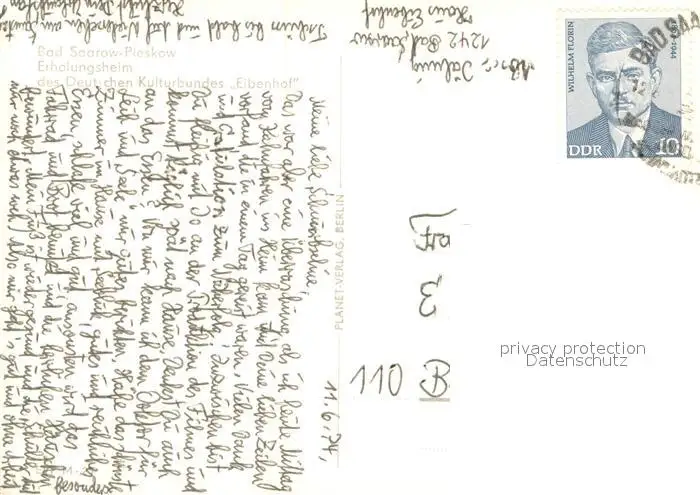 Bad_Saarow-Pieskow Erholungsheim d. deutschen Kulturbundes Eibenhof Aussenansicht Bad_Saarow-Pieskow postalisch gelaufen 1974 Erhaltung siehe scans [LiesaD40] LiesID40