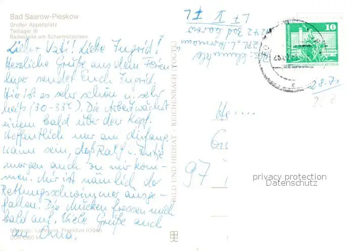 Bad_Saarow-Pieskow Zentrales Pionierlager Lilo Herrmann Appellplatz Scharmuetzelsee Bad_Saarow-Pieskow postalisch gelaufen 1982 Erhaltung siehe scans [FriedD77] Frierer