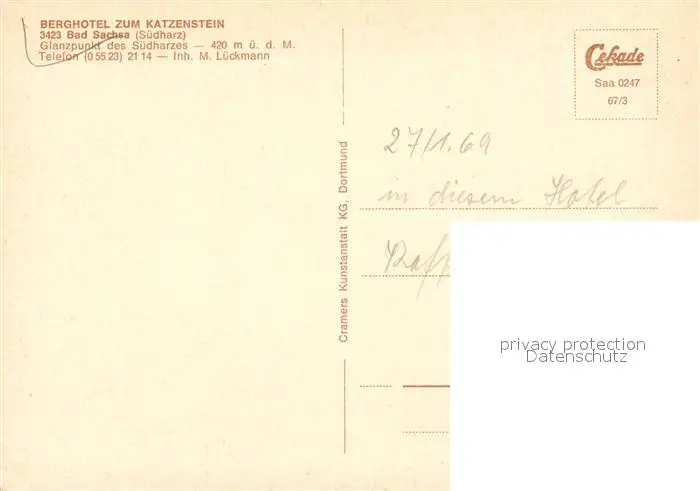 Bad_Sachsa_Harz Berghotel Zum Katzenstein Teich Gaststube Bad_Sachsa_Harz postalisch nicht gelaufen 1969 Erhaltung siehe scans [WerneD78] WernPID7