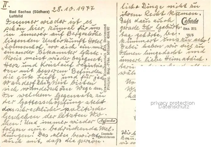 Bad_Sachsa_Harz Fliegeraufnahme Kurzentrum Bad_Sachsa_Harz postalisch gelaufen 1977 Erhaltung siehe scans [KathaD81] Kathoren