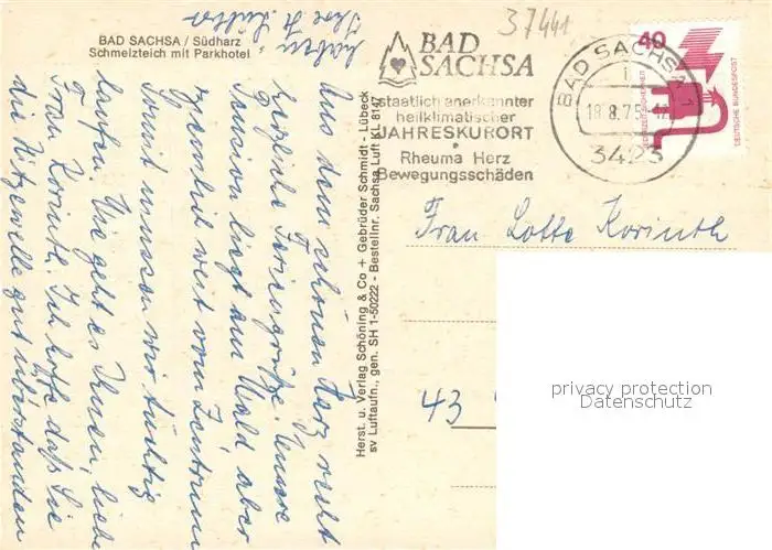 Bad_Sachsa_Harz Schmelzteich mit Parkhotel Fliegeraufnahme Bad_Sachsa_Harz postalisch gelaufen 1975 Erhaltung siehe scans [WerneD78] WernPID7