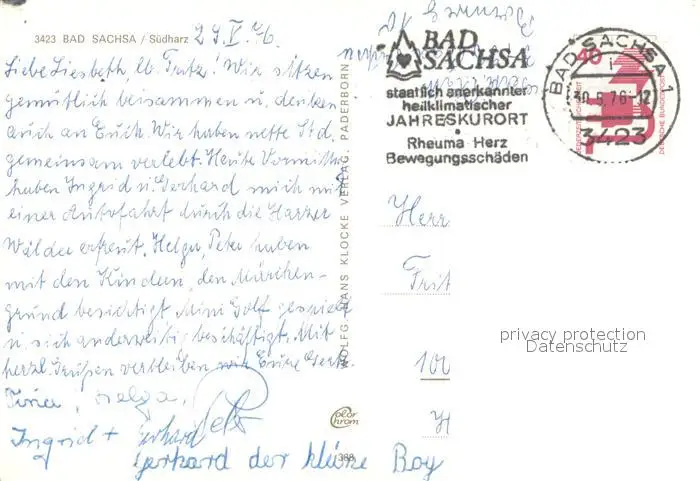 Bad_Sachsa_Harz Seniorenzentrum Bad_Sachsa_Harz postalisch gelaufen 1976 Erhaltung siehe scans [LiesaD40] LiesID40