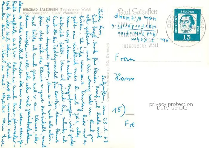 Bad_Salzuflen Brunnenausgabe in der Wandelhalle Bad_Salzuflen postalisch gelaufen 1963 Erhaltung siehe scans [WerneD78] WernPID7
