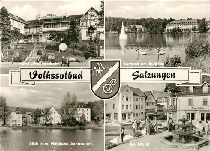 AK / Ansichtskarte Bad_Salzungen Hotel Freundschaft Kurhaus Burgsee Markt Hufeland Sanatorium Bad_Salzungen