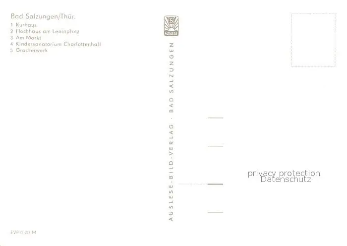 Bad_Salzungen Kurhaus Hochhaus Leninplatz Markt Kindersanatorium Charlottenhall Gradierwerk Wappen Bad_Salzungen postalisch nicht gelaufen 1975 Erhaltung siehe scans [FriedD77] Frierer