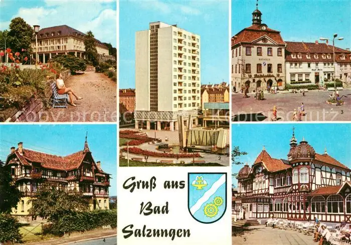 Bad_Salzungen Kurhaus Hochhaus am Leninplatz Am Markt Kindersanatorium Charlottenhall Gradierwerk Bad_Salzungen postalisch gelaufen nach 1965 Erhaltung siehe scans [WerneD78] WernPID7