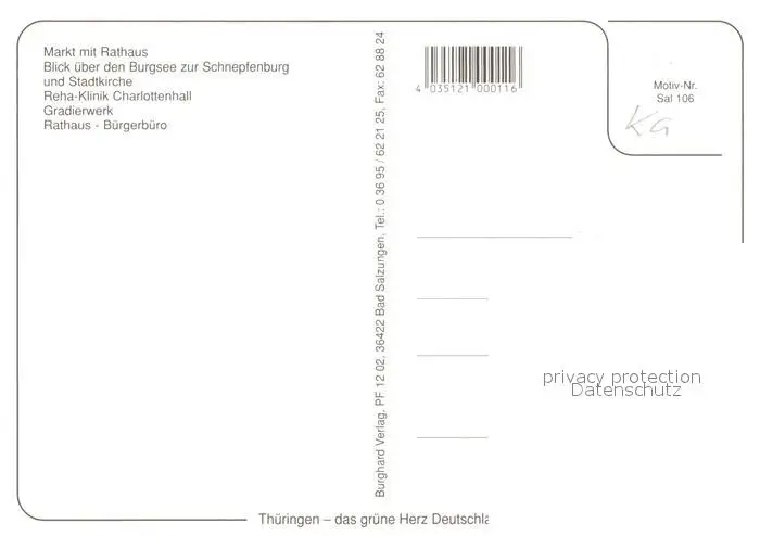 Bad_Salzungen Markt Rathaus Burgsee Schnepfenburg Stadtkirche Gradierwerk Bad_Salzungen postalisch nicht gelaufen nach 1965 Erhaltung siehe scans [KathaD81] Kathoren