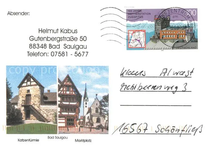 Bad_Saulgau Katzentuermle Marktplatz Kirche Bad_Saulgau postalisch gelaufen 2000 Erhaltung siehe scans [FriedD77] Frierer