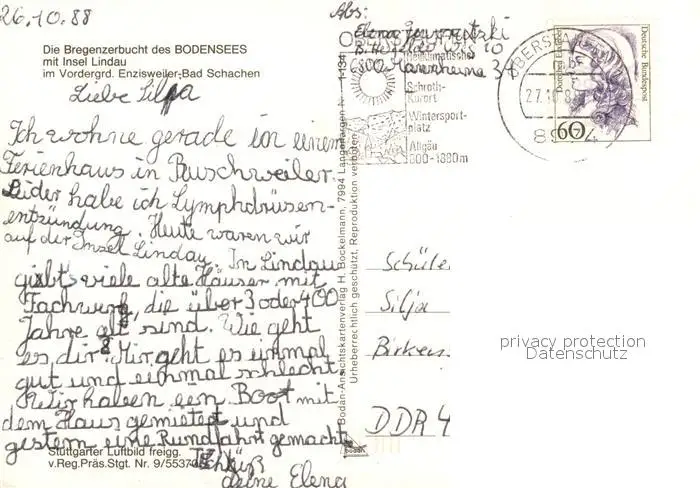 Bad_Schachen_Lindau Fliegeraufnahme Bregenzerbucht Enzisweiler Bad_Schachen_Lindau postalisch gelaufen 1988 Erhaltung siehe scans [NatalD47] NataID47