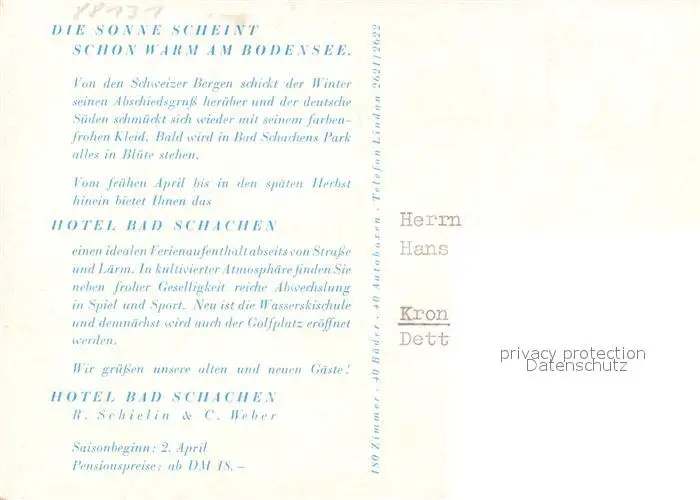 Bad_Schachen_Lindau Hotel Bad Schachen Bad_Schachen_Lindau postalisch nicht gelaufen nach 1965 Erhaltung siehe scans [WerneD78] WernPID7