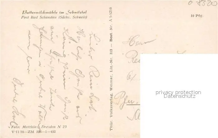 Bad_Schandau Buttermilchmuehle im Sebnitztal Bad_Schandau postalisch nicht gelaufen 1921-1965 Erhaltung siehe scans [WerneD78] WernPID7