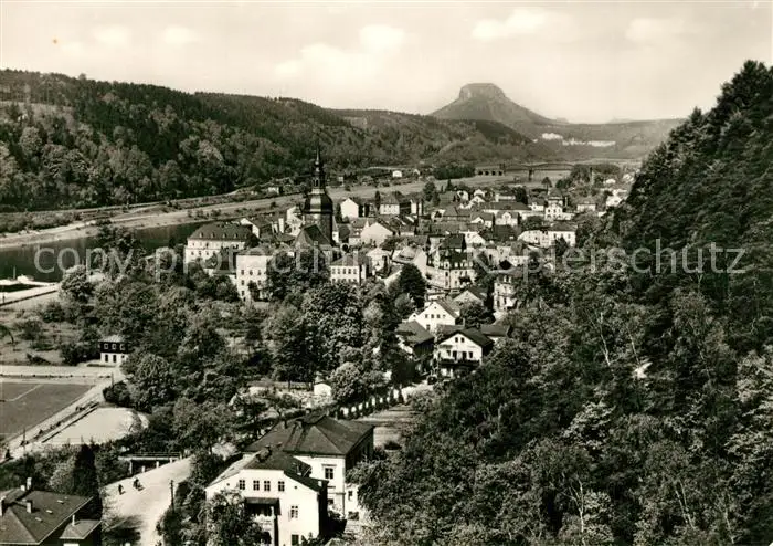 Bad_Schandau Panorama mit Blick zum Lilienstein Tafelberg Nationalpark Saechsische Schweiz Bad_Schandau postalisch nicht gelaufen 1972 Erhaltung siehe scans [FriedD77] Frierer