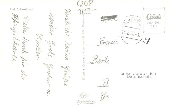 Bad_Schwalbach Teilansicht Bad_Schwalbach postalisch gelaufen 1959 Erhaltung siehe scans [LiesaD40] LiesID40