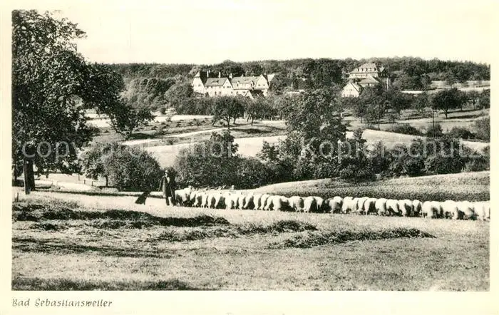 Bad_Sebastiansweiler Landschaftspanorama Schaefer mit Schafherde Bad_Sebastiansweiler postalisch gelaufen 1956 Erhaltung siehe scans [FriedD77] Frierer