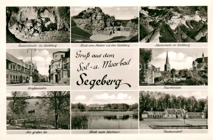 AK / Ansichtskarte Bad_Segeberg Einsturzhalle Strassenmotiv Am gr See Kurhaus Kalkberg Saeulenhalle Marktplatz Badeanstalt Bad_Segeberg