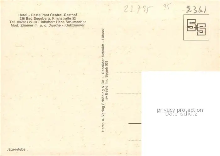 Bad_Segeberg Hotel-Restaurant Central-Gasthof Bad_Segeberg postalisch nicht gelaufen nach 1965 Erhaltung siehe scans [PaolaD17] PaolPID1