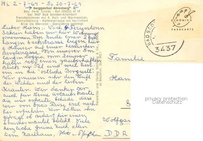 Bad_Sooden-Allendorf Berggasthof Ahrenberg Gartenterrasse Bad_Sooden-Allendorf postalisch gelaufen 1969 Erhaltung siehe scans [FriedD77] Frierer