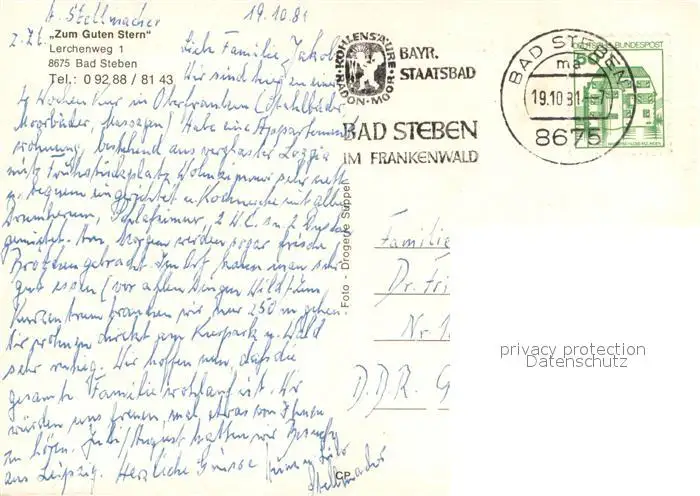 Bad_Steben Apartments Zum guten Stern Bad_Steben postalisch gelaufen 1981 Erhaltung siehe scans [WerneD78] WernPID7