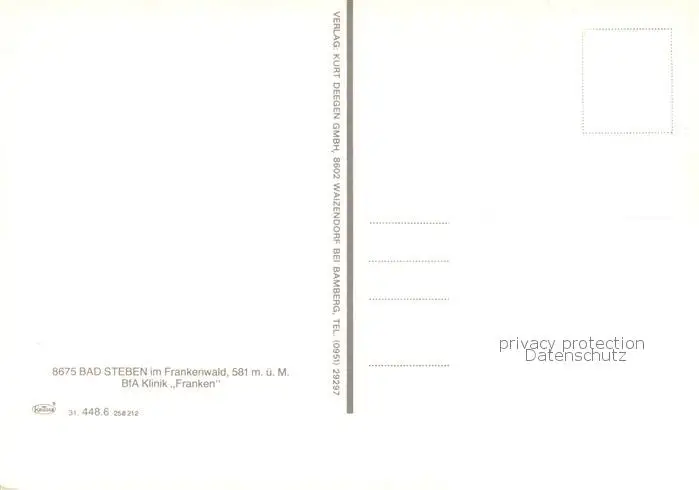 Bad_Steben BfA Klinik Franken im Frankenwald Bad_Steben postalisch nicht gelaufen nach 1965 Erhaltung siehe scans [FriedD77] Frierer