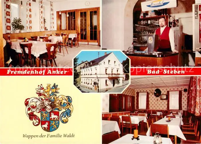 Bad_Steben Fremdenhof Anker Teilansichten m. Wappen d. Fam. Waldt Bad_Steben postalisch nicht gelaufen nach 1965 Erhaltung siehe scans [LiesaD40] LiesID40