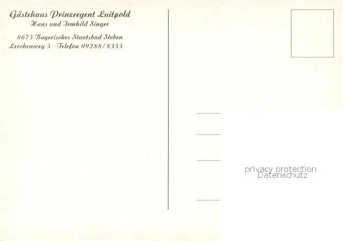 Bad_Steben Gaestehaus Prinzregent Luitpold Bad_Steben postalisch nicht gelaufen nach 1965 Erhaltung siehe scans [FriedD77] Frierer