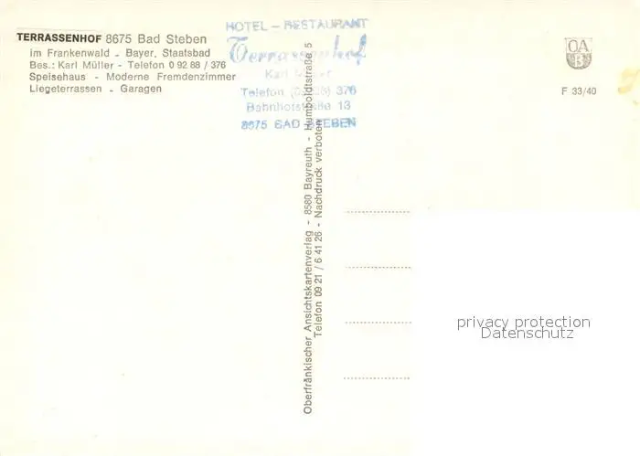 Bad_Steben Hotel Restaurant Terrassenhof Bad_Steben postalisch nicht gelaufen nach 1965 Erhaltung siehe scans [FriedD77] Frierer
