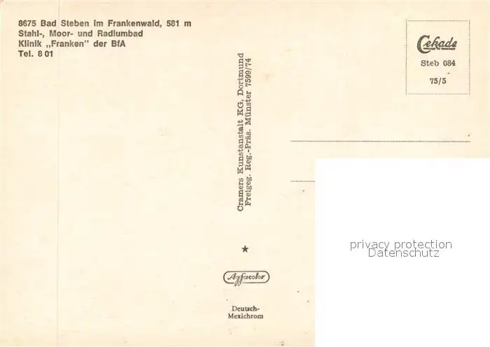 Bad_Steben Klinik Franken der BfA Bad_Steben postalisch nicht gelaufen nach 1965 Erhaltung siehe scans [WerneD78] WernPID7