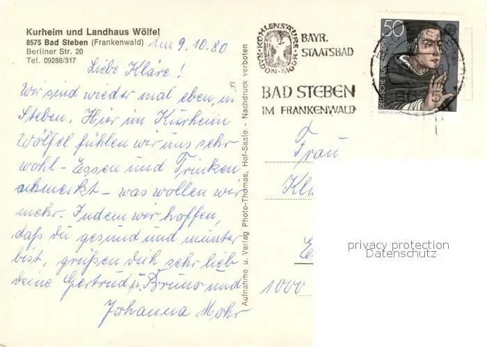 Bad_Steben Kurheim und Landhaus Woelfel Bad_Steben postalisch gelaufen 1980 Erhaltung siehe scans [WerneD78] WernPID7