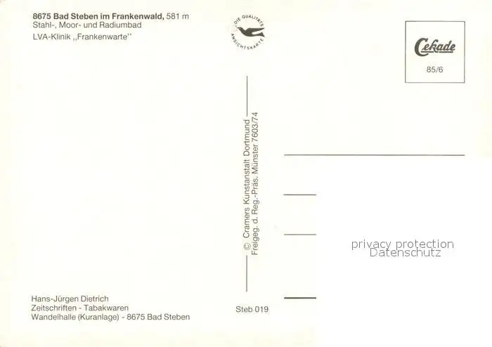 Bad_Steben LVA Klinik Frankenwarte Fliegeraufnahme Bad_Steben postalisch nicht gelaufen nach 1965 Erhaltung siehe scans [WerneD78] WernPID7
