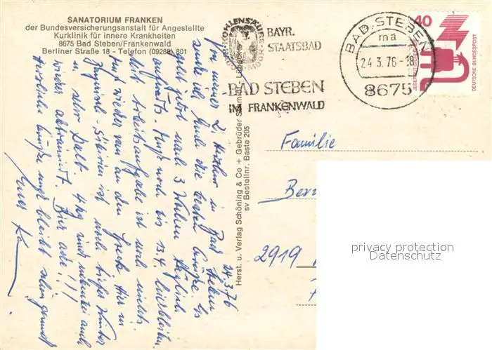 Bad_Steben Sanatorium Franken der BVA fuer Angestellte Teilansichten Bad_Steben postalisch gelaufen 1976 Erhaltung siehe scans [WerneD78] WernPID7