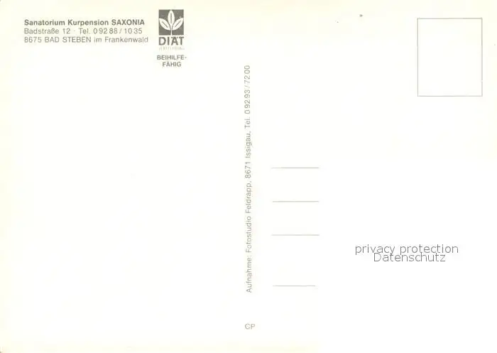 Bad_Steben Sanatorium Kurpension Saxonia Bad_Steben postalisch nicht gelaufen nach 1965 Erhaltung siehe scans [FriedD77] Frierer