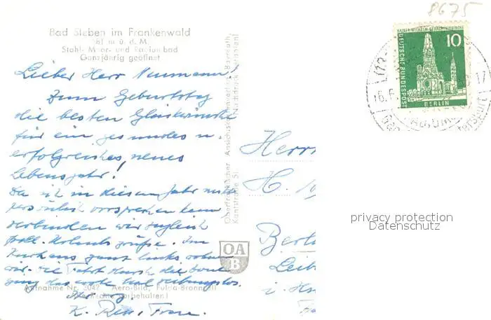 Bad_Steben Stahl und Moorbad Fliegeraufnahme Bad_Steben postalisch gelaufen 1958 Erhaltung siehe scans [WerneD78] WernPID7
