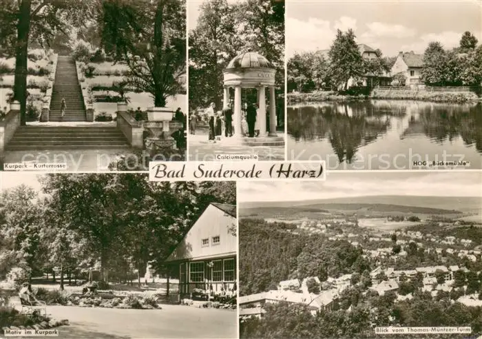 AK / Ansichtskarte Bad_Suderode Kurpark Kurterrasse Calciumquelle HOG Bueckemuehle Blick vom Thomas Muentzer Turm Bad_Suderode