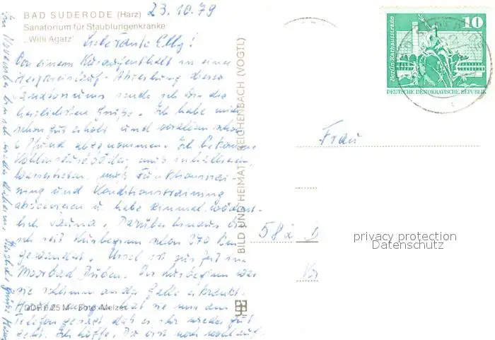 Bad_Suderode Sanatorium f. Staublungenerkrankte Bad_Suderode postalisch gelaufen 1979 Erhaltung siehe scans [LiesaD40] LiesID40