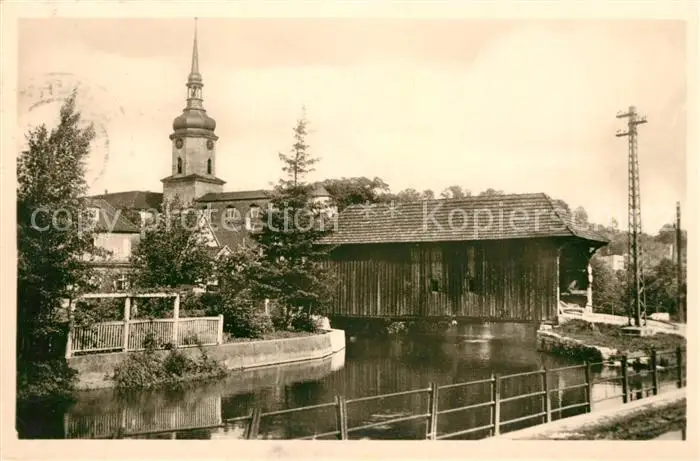 Bad_Sulza Ilmbruecke und Kirche Volkssolbad Bad_Sulza postalisch gelaufen 1957 Erhaltung siehe scans [FriedD77] Frierer
