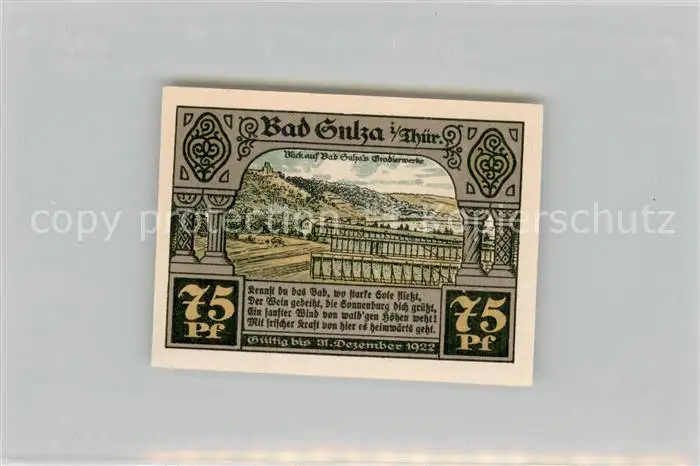 Bad_Sulza Notgeldschein Fuenfundsiebszig Pfennig Bad_Sulza postalisch nicht gelaufen 1921 Notgeldschein (keine Postkarte) Erhaltung siehe scans [LiesaD40] Notgeldschein (keine Postkarte) LiesID40