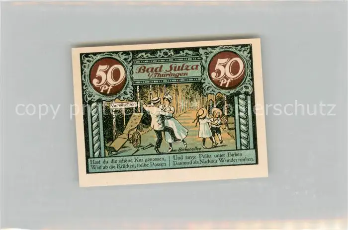 Bad_Sulza Notgeldschein Fuenfzig Pfennig Bad_Sulza postalisch nicht gelaufen 1921 Notgeldschein (keine Postkarte) Erhaltung siehe scans [LiesaD40] Notgeldschein (keine Postkarte) LiesID40